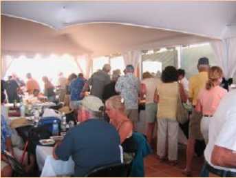 With November comesThanksgiving, and this year was no exception. Club Cruceros, the La Paz yacht club, pulled it off with aplomb again: they fed over 200 cruisers and friends with a turkey feast! Each of the three years the affair has improved, and the food has always been plentiful and delicious. The Club provides the turkeys, plus the tables & chairs and plates. Cruisers provide the side dishes and volunteers to provide carving, set-up, serving, etc. The day was warm this year, but not quite as hot as last year, thank the gods. Marina Palmira provided shade tents and lots of assistance to make this all happen in a comfortable venue. THANKS to all!!
