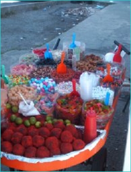 Sleeping it off...at the Juarez market Sweeets on the wheelbarrow Maybe it is better just not to know....